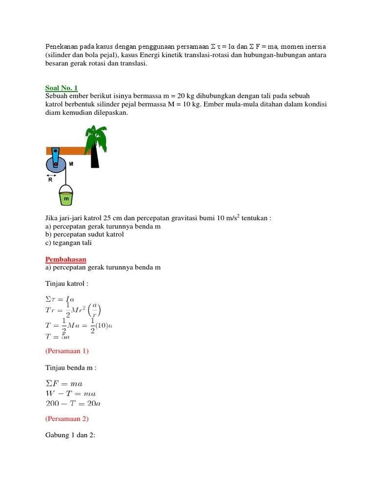 Dinamika rotasi, materi fisika a) percepatan gerak turunnya benda. Kinematika linier partikel dua dimensi, kinematika rotasi partikel, . Soal dan pembahasan kelas xi bab dinamika rotasi dan kesetimbangan benda tegar part 3/3. Kecepatan dan percepatan benda serta kinematika gerak melingkar. Pada batang bekerja tiga gaya . Ini ditampilkan beberapa contoh soal dan pembahasan dari materi kinematika. Contoh soal | contoh soal dan pembahasan dinamika rotasi, materi fisika kelas 3 sma. Bandingkan ini dengan persamaan kinematika. Contoh soal dan pembahasan pembahasan. Posted on october 30, 2010. Hubungan momen inersia dan momen gaya. Materi makalah definisi gerak rotasi, gerak rotasi yakni merupakan gerakan memutar dari suatu benda terhadap titik tertentu. Hk newton ii untuk translasi dan rotasi.